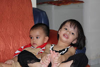 Hari ni adalah hari jadi yg pertama utk anak buah aku yg paling bongsu, Afiq Sulaiman..So utk birthday dia, akak ipar aku plan buat mkn2 sesama kitorg je..Aku belikan cup cake yg penuh dgn gambar Sponge Bob sbb Afiq ni suka sgt dgn Sponge Bob..Pastu M plak sponsor KFC and kak rumah akak ipar aku masak laksa Sarawak yg dah lama aku xmkn..hehe...Unfortunately abg aku xdpt join sbb sdnly kena kerja ptg plak..Tp "jamuan" kitorg berjalan seperti yg dirancang..hehe..Afiq and Meera siap pakai baju baru yg mak aku kirim dari Miri..kebetulan sampai on time hari ni, tu yg diorg buka and try pakai..hehe..To AFIQ SULAIMAN, HAPPY 1ST BIRTHDAY..